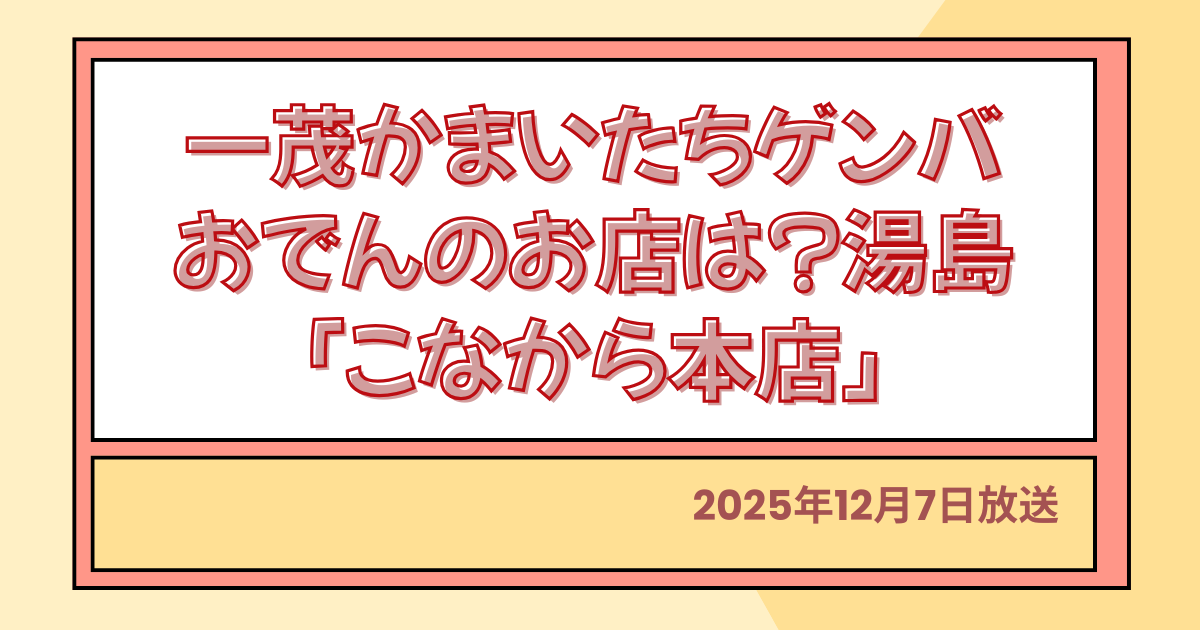 【【一茂xかまいたちゲンバ】おでんのお店は?湯島「こなから本店」2025年12月7日放送