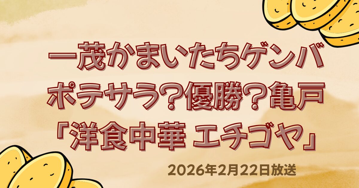 【一茂xかまいたちゲンバ】ポテサラ?優勝?亀戸「洋食中華 エチゴヤ」【2026年2月22日放送